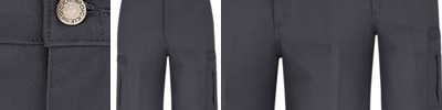 - Welt back pockets and pleated cargo pockets with hidden snaps