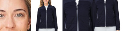 - Center front dyed-to-match reverse coil zipper with rubber pull