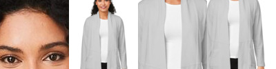 5 oz./yd² / 170 gsm (US), 8.4 oz/Lyd (CA), 58/39/3 cotton/modal/spandex jersey Soft modal blend drapes without clinging Always flattering Perfect Fit™ Shawl collar with one-button closure Lower pockets Princess seams Longer length for everyday activity and movement