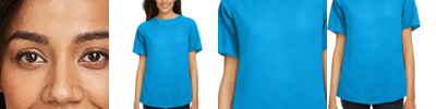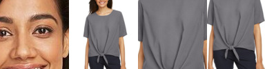 4.6 oz./yd²., 100% polyester crepe Always flattering Perfect Fit™ Feminine scoop neckline Tie-front detail at center front hem
