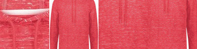 95/5 recycled polyester/cotton Moisture-management properties Three-panel hood with drawcord Set-in sleeves Pouch pocket Tag-free label