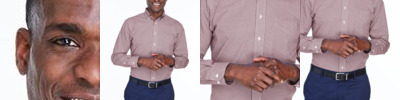 4.1 oz. (US), 6.8 oz/Lyd (CA), 60/40 cotton/polyester Fine yarn count shirting Stain-release and wrinkle-free finish Classic fit Rolled button-down collar with pearlized buttons Adjustable "Comfort Collar" for up to an inch of stretch at neck Patented pucker-free taped seams Specially fused collar, cuffs and placket Split back seam with bias cut back yoke Left chest pocket