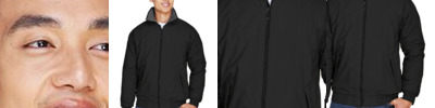 100% Taslon nylon shell Microfleece lining Lightweight poly-fill insulation Sturdy Black enamel front-zipper with InconspicuZip™ for clean embroidery YKK zippers Nylon-lined raglan sleeves Outside zip pockets, inside zip security pocket Banded bottom