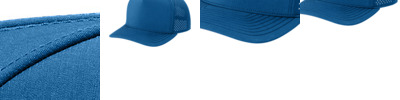 This cap combines performance features with the look of a traditional trucker. 94/6 polyester/spandex micro ripstop 100% polyester brushed twill underbill Gusty grey underbill Durable water repellent (DWR) finish helps keep cap afloat in water 5-panel with curved bill Moisture-wicking sweatband and front panel lining Breathable oval pattern perforation in mid and back panels Structured Low-profile 7-position adjustable snapback closure Matte black silicone O icon at left of keyhole