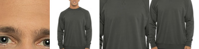 7.4-ounce, 60/40 combed ring spun cotton/polyester, 30 singles, brushed interior Twill back neck tape Halfmoon at back neck Tear-away label Side seamed 1x1 rib knit cuffs and waistband