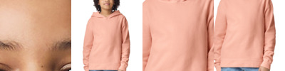 10-ounce, 80/20 combed ring spun cotton/recycled polyester fleece 75/25 cotton/polyester (Heather Gray) 100% cotton face Shoulder to shoulder binding Tear-away label Halfmoon at back neck Hoodie with no drawcords 1x1 rib knit collar Dropped shoulders Front pouch pocket Side seamed 2x2 rib knit cuffs and hem Oversized fit