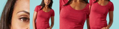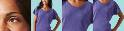 - Capped sleeves with a solid color rib neck trim