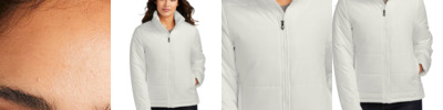 With wider baffles for a modern look, this water-resistant puffer looks cool while keeping you warm. 100% polyester shell and lining Molded center front zipper Interior storm flap Zippered hand pockets Insulation method: 4.4-oz. polyfill Water protection method: water-repellent finish Port Pocket for decoration access